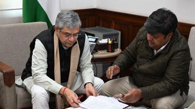 दुष्यंत सिंह ने रेल मंत्री से की मुलाकात, ट्रेनों के ठहराव की मांग