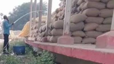 आरंग के धान खरीदी केंद्र में गड़बड़ी, वजन बढ़ाने धान को पानी से भिगोया; वीडियो वायरल