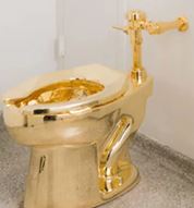 इस शौचालय को इतालवी कलाकार मौरिजियो कैटेलन ने बनाया था और दक्षिणी इंग्लैंड में ब्लेनहेम पैलेस के चर्चिल परिवार के निवास से इसको चुराया गया था, जो एक प्रमुख पर्यटक आकर्षण और यूनेस्को विश्व धरोहर स्थल है।