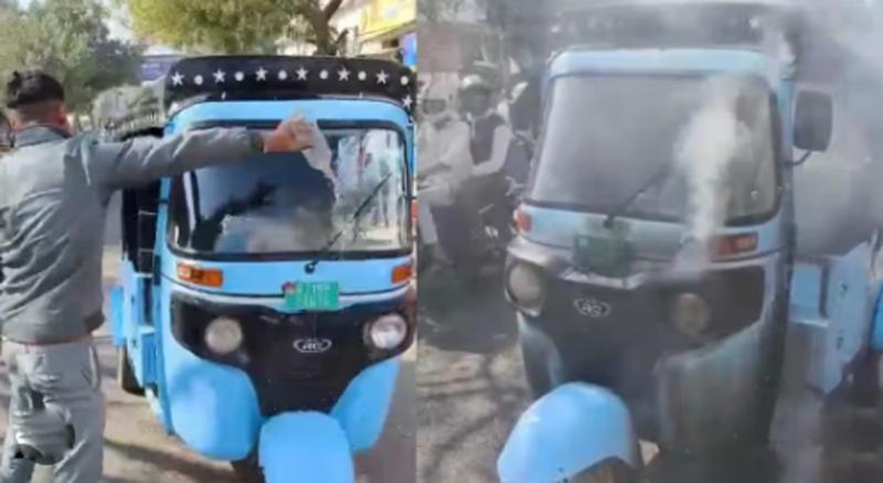 ई-रिक्शा को आग लगने बाद रोने लगी शख्स की पत्नी