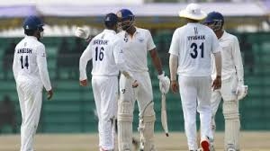 डोगरा ने प्रसिद्ध कृष्णा की गेंद पर चौका जड़ा। गेंद उनके बल्ले का बाहरी किनारा लेकर स्लिप में चार रन के लिए गई। हालांकि, गेंद स्लिप क्षेत्र में खड़े फील्डर के बस बगल से गुजरी। इसके तुरंत बाद स्ट्राइकर एंड पर खिलाड़ियों के बीच कहासुनी शुरू हो गई। स्टंप माइक में भी कुछ तीखी बातें सुनाई दीं। देखते ही देखते मामला बढ़ गया और डोगरा और कर्नाटक के फील्डर केवी अनीश के बीच हाथापाई की नौबत आ गई। इसी दौरान पारस ने अनीश के हेल्मेट पर सिर मारा। इससे पहले कि अंपायर बीच-बचाव करते, कर्नाटक के सीनियर बल्लेबाज मयंक अग्रवाल दोनों खिलाड़ियों के बीच आ गए और स्थिति को संभालने की कोशिश की।