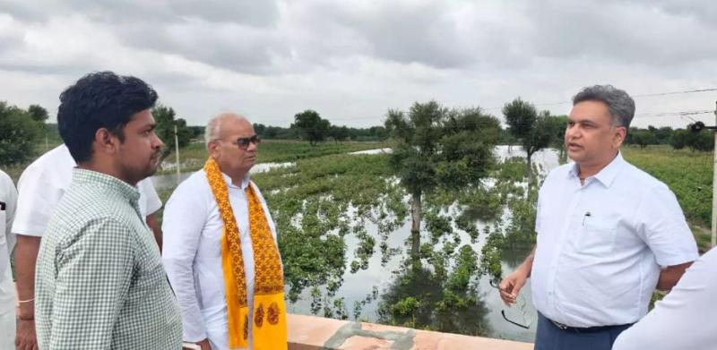 जयपुर। शिक्षा मंत्री व जोधपुर जिला प्रभारी मंत्री मदन दिलावर ने जोधपुर जिले की चामू तहसील के अतिवृष्टि प्रभावित क्षेत्रों का दौरा कर हालात का जायजा लिया। शिक्षा मंत्री ने ग्रामीणों एवं किसानों से सीधे संवाद कर उनकी बातों को सुना और हर संभव सहयोग व स्थाई समाधान का आश्वासन दिया।