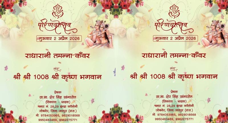 इस अनूठे आयोजन की तैयारियां जोरों-शोरों से चल रही हैं। परिवार ने करीब 400 निमंत्रण पत्र छपवाए हैं और ऑनलाइन माध्यम से भी लोगों को आमंत्रित किया जा रहा है। हल्दी, मेहंदी, बारात, फेरे और विदाई जैसी हर रस्म इस विवाह में पूरी श्रद्धा के साथ निभाई जाएगी। इस दिव्य विवाह को देखने के लिए करीब दो हजार लोगों के पहुंचने का अनुमान है। तमन्ना के पिता मंगल सिंह खंगारोत ने इस अवसर के लिए भगवान श्रीकृष्ण की एक विशेष प्रतिमा तैयार करवाई है, जो चांदी की बनी है और उस पर सोने का लेप चढ़ाया गया है। परिवार वृंदावन और भांडीर वन से सुहाग की सामग्री और सिंदूर भी लेकर आया है। मान्यता है कि भांडीर वन वही पवित्र स्थल है, जहां ब्रह्माजी ने स्वयं राधा और कृष्ण का विवाह संपन्न कराया था।