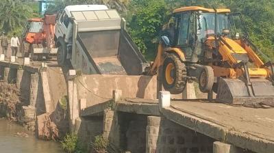 छतरपुर में बड़ा हादसा: रेत से भरे ओवरलोड ट्रक के गुजरते ही पुल ढहा