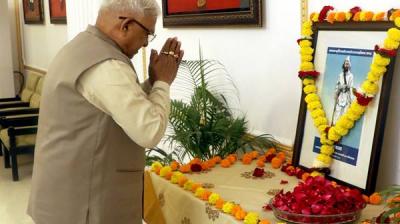 राज्यपाल पटेल ने क्रांतिसूर्य टंट्या भील को अर्पित की पुष्पाजंलि