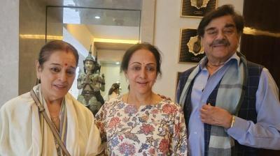 पत्नी पूनम संग हेमा मालिनी से मिलने पहुंचे शत्रुघ्न सिन्हा, जताई संवेदनाएं